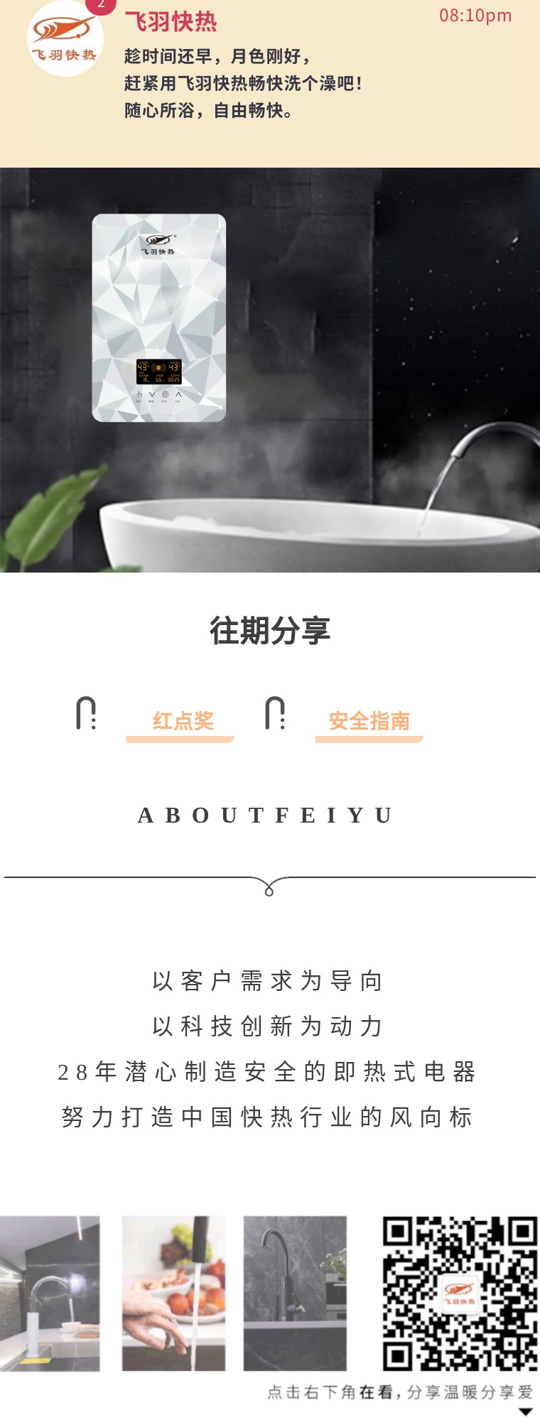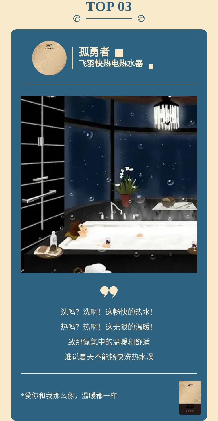 趁時(shí)間還早,月色剛好,趕緊用飛羽快熱暢快洗個(gè)澡吧!隨心所浴,自由暢快。