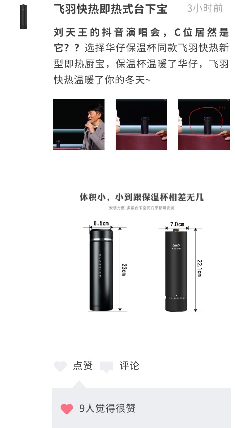 劉天王的抖音演唱會(huì),C位居然是它??選擇華仔保溫杯同款飛羽快熱新型即熱廚寶,保溫杯溫暖了華仔,飛羽快熱溫暖了你的冬天~
