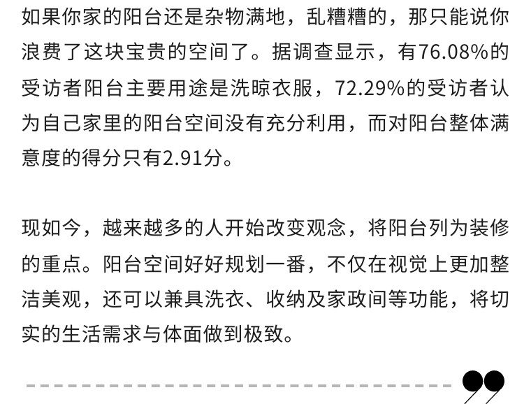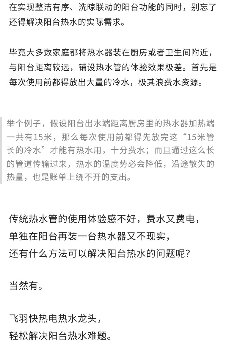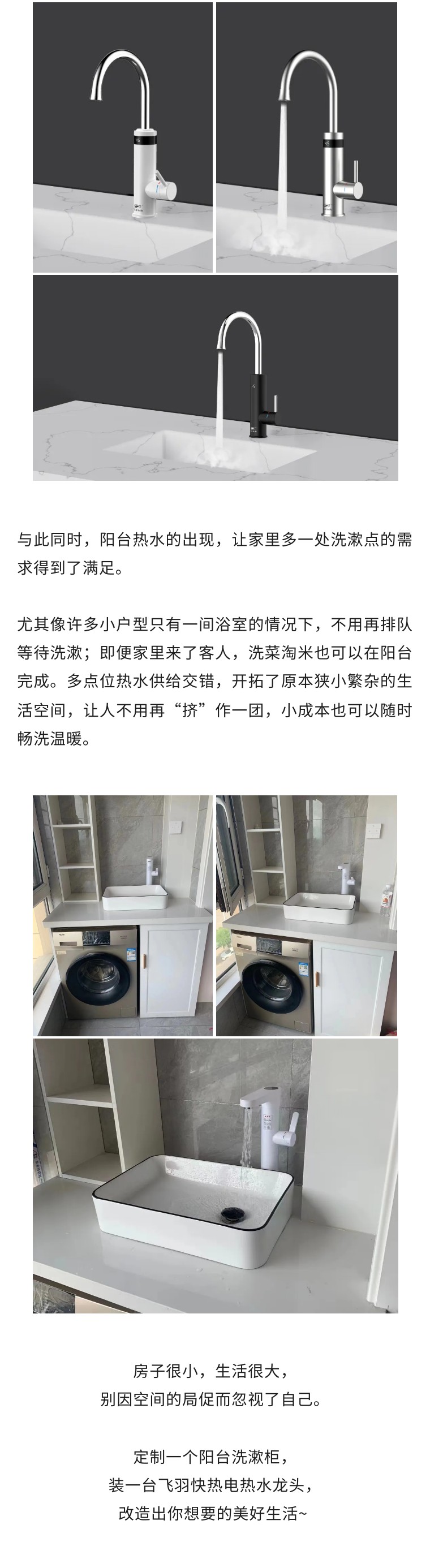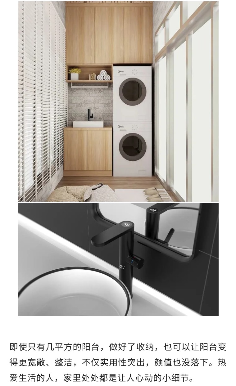 龍頭一開,熱水即來 陽臺,作為室內(nèi)建筑的延伸,用好了可以是居心地,用不好就是雞肋區(qū)。隨著居住者對生活品質(zhì)的追求,陽臺不再只是單一的晾曬區(qū)或“雜物間”,開始兼?zhèn)涓鄬嵱霉δ堋?/p>