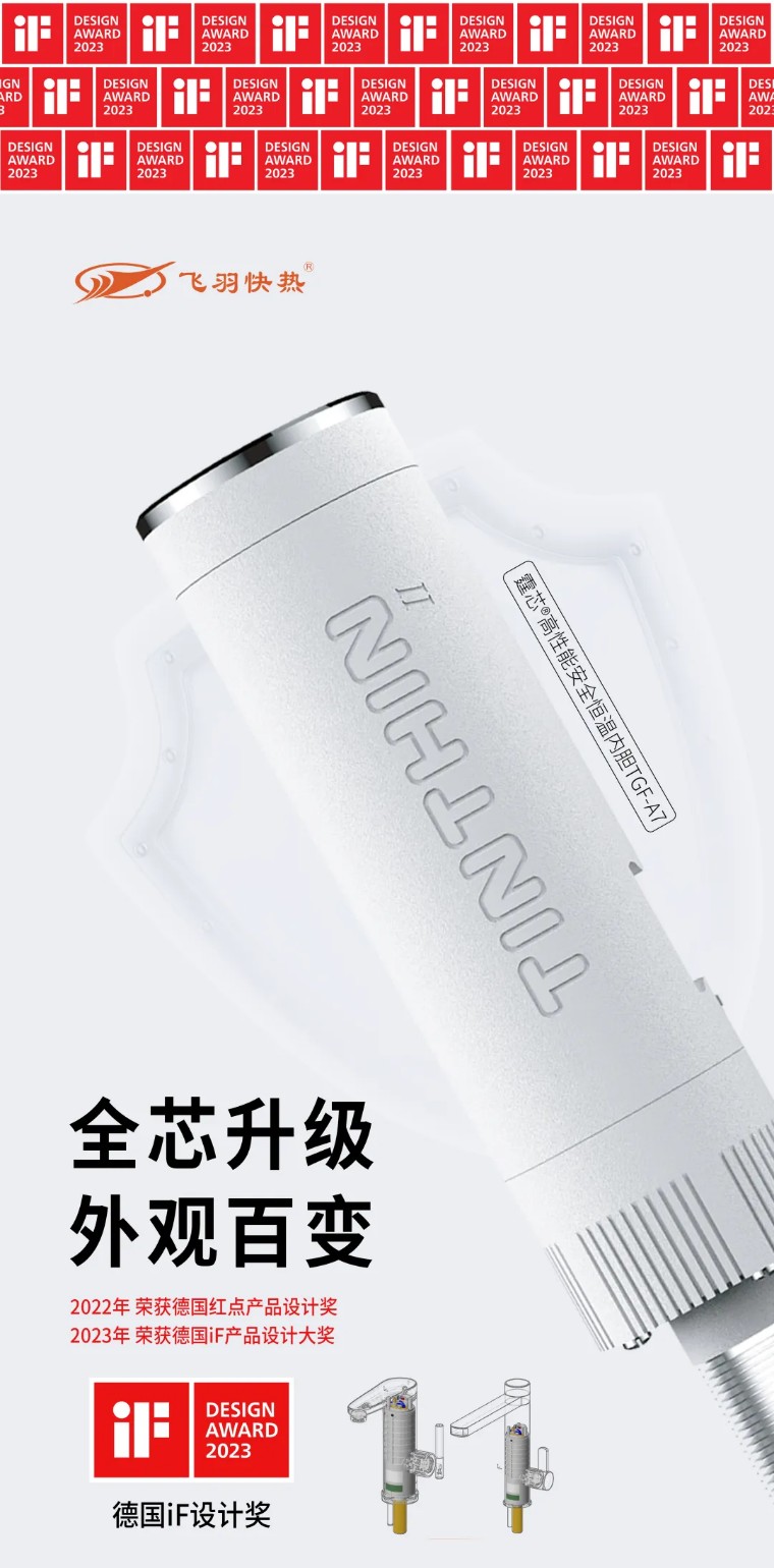 飛羽快熱霆芯?高性能安全恒溫內(nèi)膽TGF-A7榮獲2023德國iF設(shè)計大獎(iF DESIGN AWARD 2023)。這也是繼德國紅點獎之后,我們獲得的又一國際大獎!