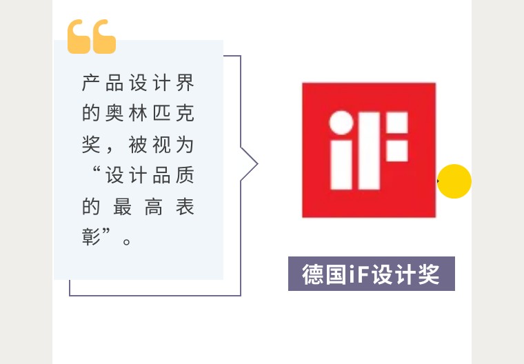 德國iF設(shè)計獎被視為“設(shè)計品質(zhì)的最高表彰”,由德國漢諾威工業(yè)設(shè)計論壇——德國歷史最悠久的工業(yè)設(shè)計機構(gòu),于1953年為振興工業(yè)、提倡設(shè)計創(chuàng)新而設(shè)立的獎項,以“獨立、嚴謹、可靠”的評獎理念聞名于世,被譽為“產(chǎn)品設(shè)計界的奧林匹克獎”,是設(shè)計師們心向往之的最高榮譽之一。
