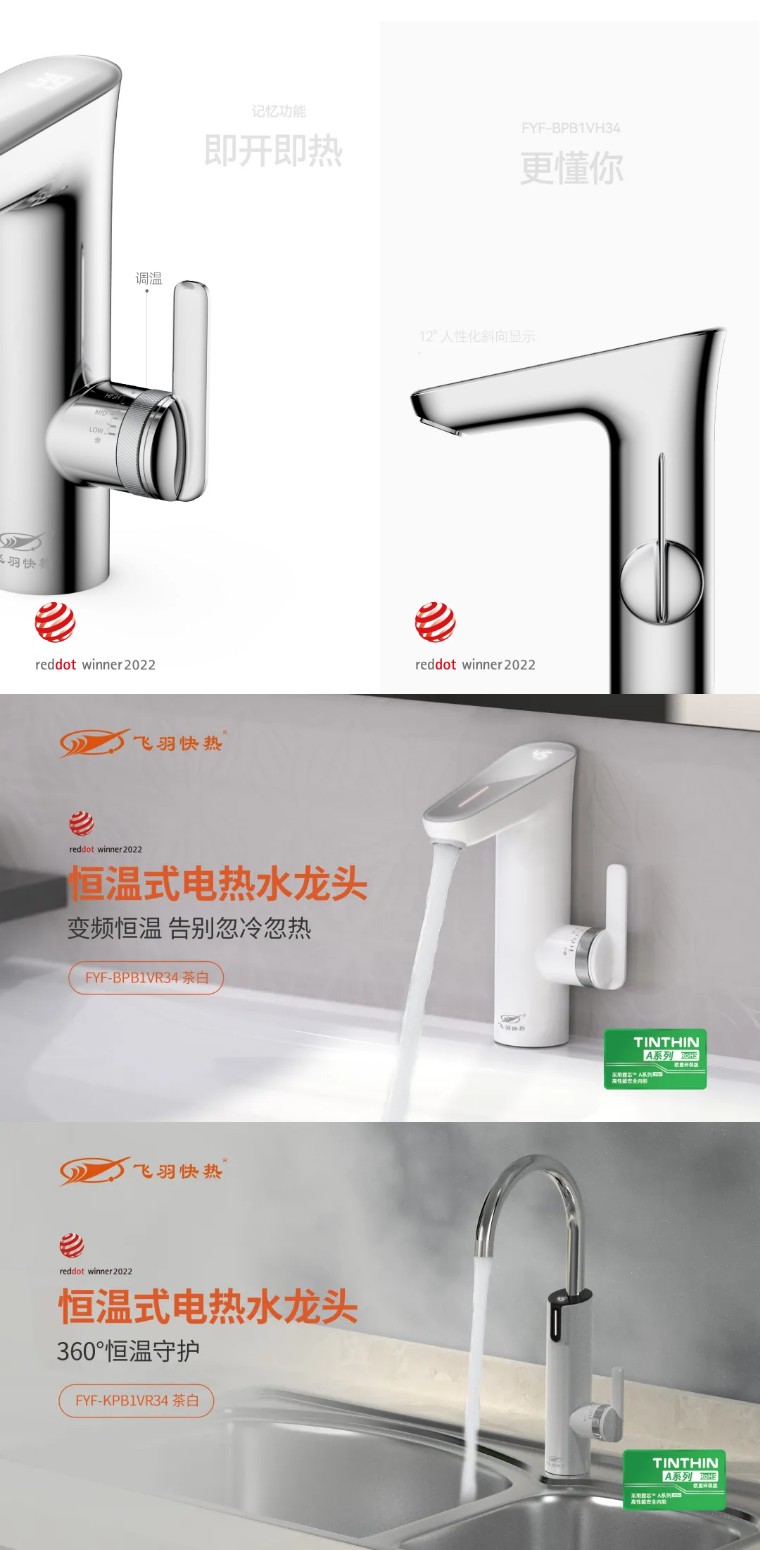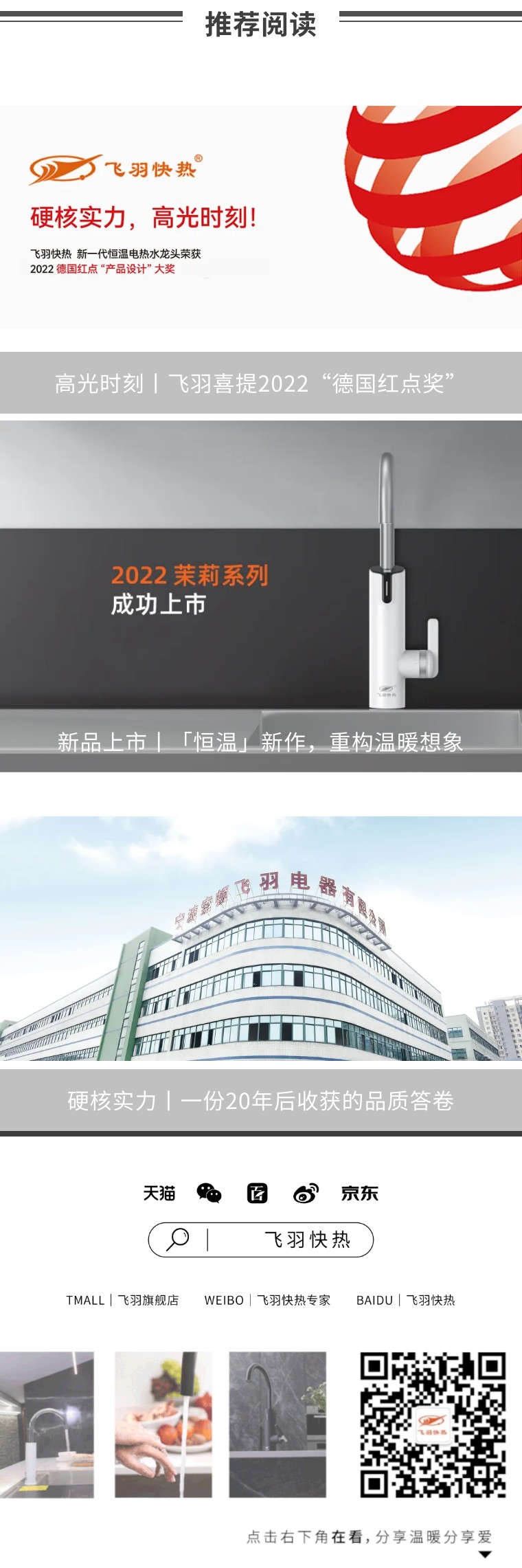 2022年新上市的恒溫電水龍頭·茉莉,搭載新一代霆芯A Series變頻恒溫安全內(nèi)膽,解決了傳統(tǒng)電熱水龍頭使用時(shí)水溫忽冷忽熱的痛點(diǎn),一鍵即刻獲取恒溫?zé)崴?/strong>打造業(yè)內(nèi)首款的“真恒溫”電熱水龍頭。該產(chǎn)品榮獲2022年德國紅點(diǎn)產(chǎn)品設(shè)計(jì)大獎(jiǎng),該獎(jiǎng)項(xiàng)被譽(yù)為“設(shè)計(jì)界的奧斯卡”,也是全球公認(rèn)的工業(yè)設(shè)計(jì)殿堂級(jí)獎(jiǎng)項(xiàng)。