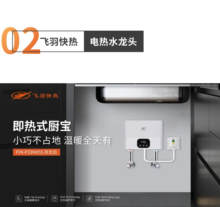 告別傳統(tǒng)熱水管傳輸?shù)馁M(fèi)時(shí)費(fèi)水,飛羽快熱即熱式小廚寶熱水更快,也更省電,機(jī)身迷你小巧,使用場景靈活多變。無論在廚房、衛(wèi)生間或者是陽臺(tái),只要有冷水管和電源,小廚寶都可以提供源源不斷的熱水,方便人們隨時(shí)取用。