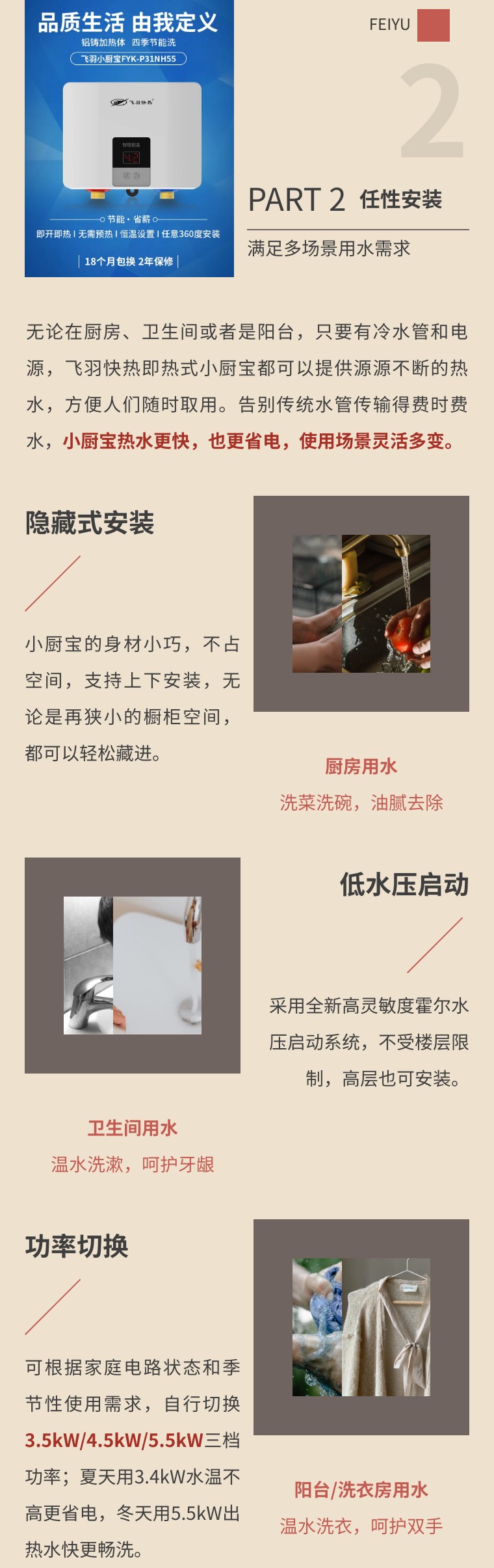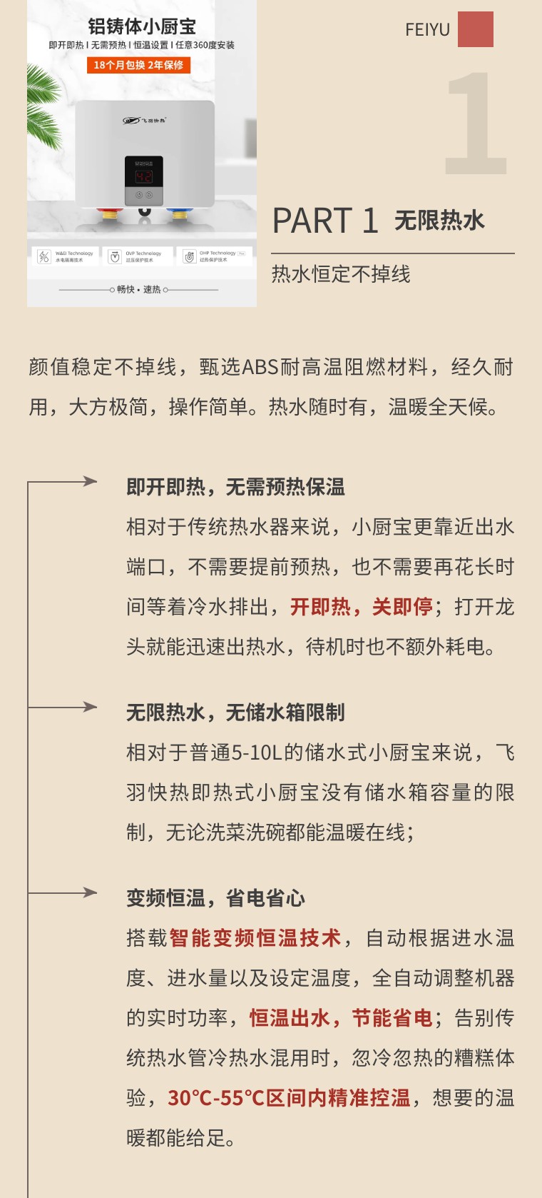 明明家里有了熱水器,你卻還在等冷水排光?明明浴室距離廚房也就十步距離,熱水為何總是遲遲不來?想要熱水即開即有,你家少不了這一臺(tái)飛羽快熱即熱式小廚寶。