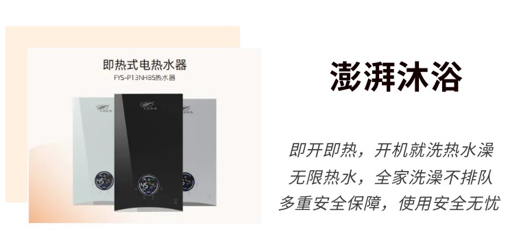 即熱式電熱水器則是適用于現(xiàn)代衛(wèi)浴風(fēng)格的美觀電器,超薄機(jī)身成就“浴室墻上一幅畫”,告別傳統(tǒng)電熱水器的臃腫。開機(jī)就洗熱水澡,全家洗澡不排隊。熱力澎湃無限洗,舒適恒溫每一刻。