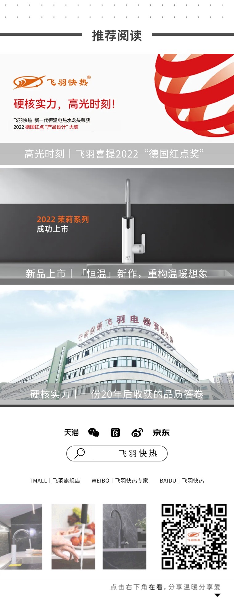 本次重磅推出的明星產(chǎn)品,正是榮獲了2022年度德國紅點(diǎn)獎和所用內(nèi)膽獲得2023年度德國iF獎的恒溫式電熱水龍頭·茉莉。
